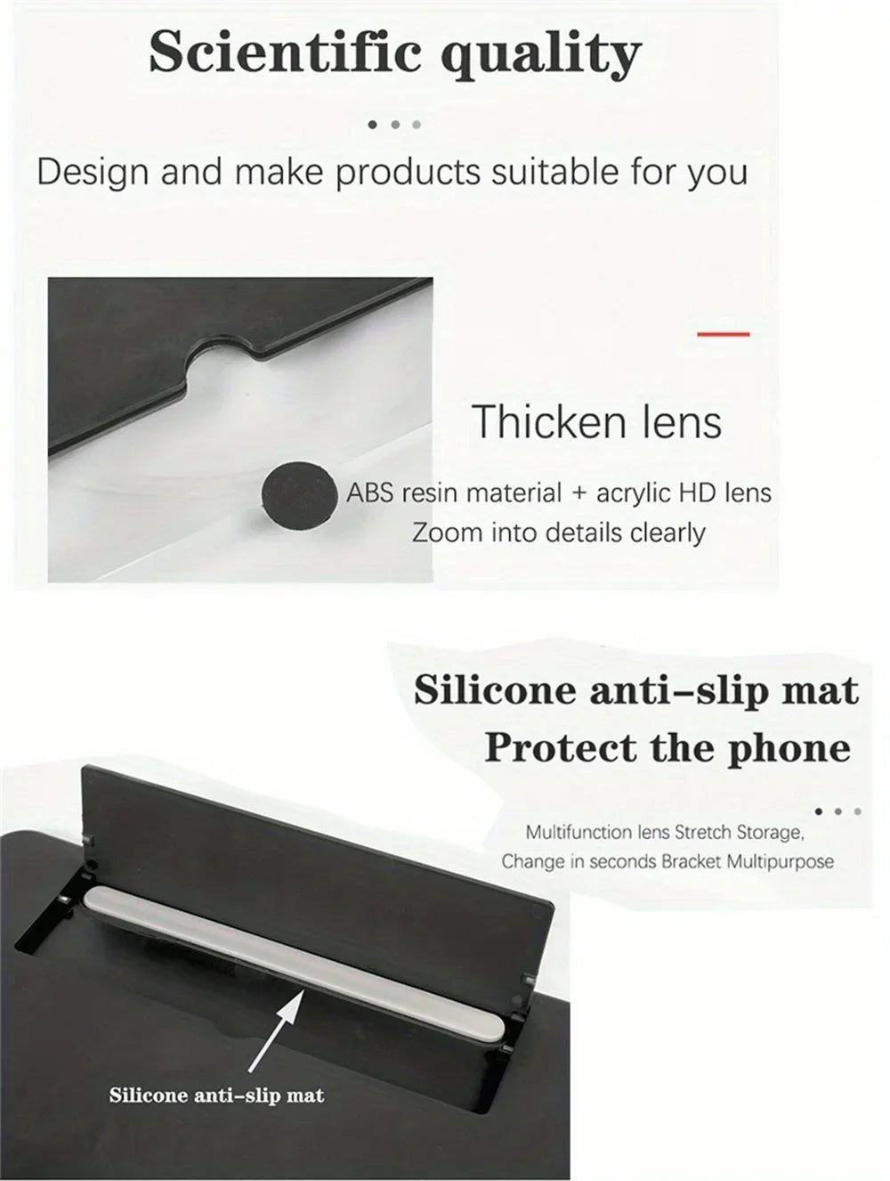 5. Excellent compatibility: whether you are for iPhone or an Android phone, the projector screen of the magnifying glass can be used with your device. 3D visual pleasure can avoid visual fatigue.