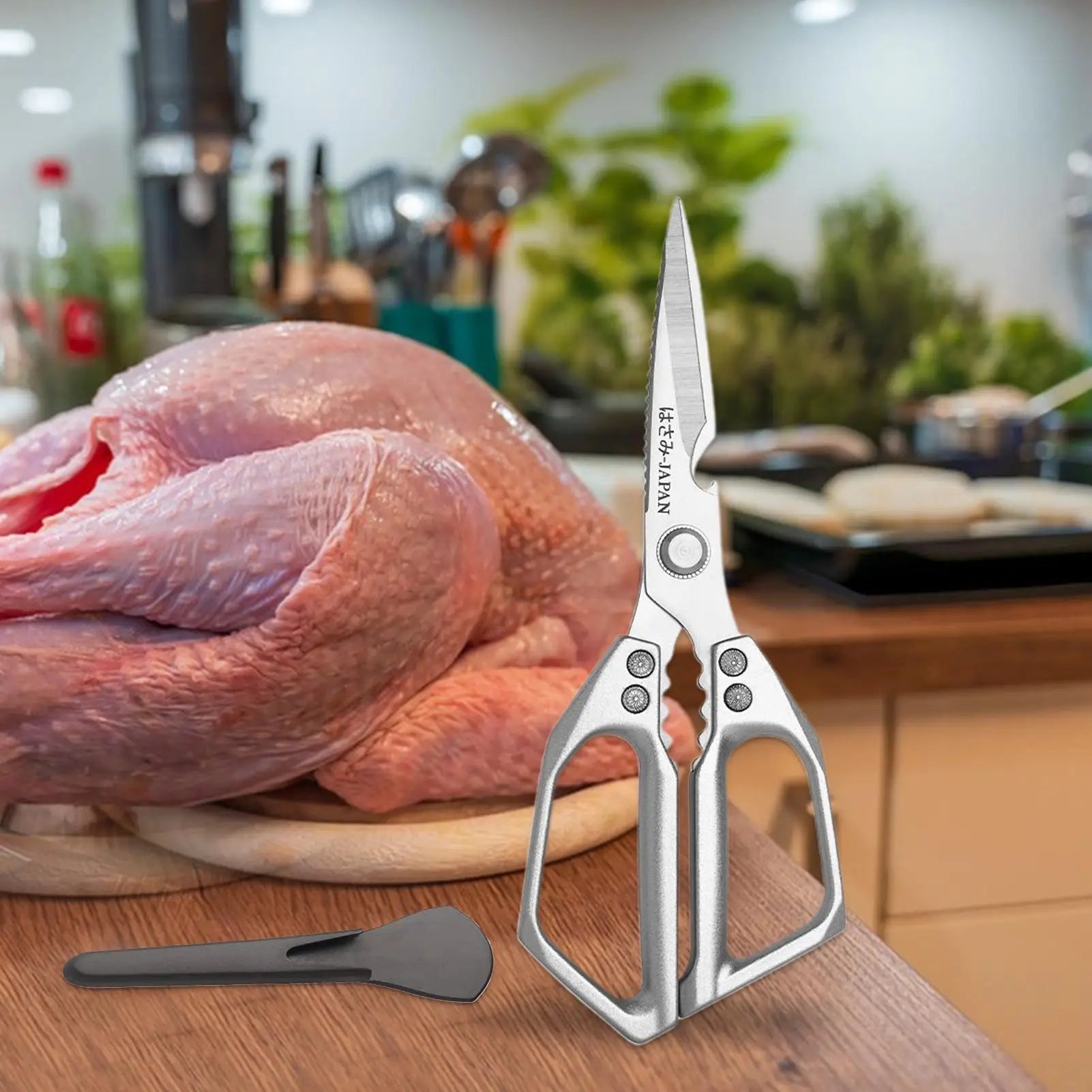 3.All-Purpose Food Shears: Skilfully handles turkey, seafood, chicken, bone-in poultry, meat, fish, and vegetables, delivering multifunctional use to enhance your cooking experience by simplifying cutting tasks with dependable results